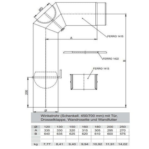 Winkelrohr Set Ferro-Lux vom Hersteller Jeremias ist zum Anschluss eines Kaminofens an einen Schornstein. Verbindungsleitung aus Stahlblech DC01 (ST12) mit eingezogener Steckverbindung, für den Einsatzbereich im Wohn- und Sichtbereich für den Anschluss an Kaminöfen.