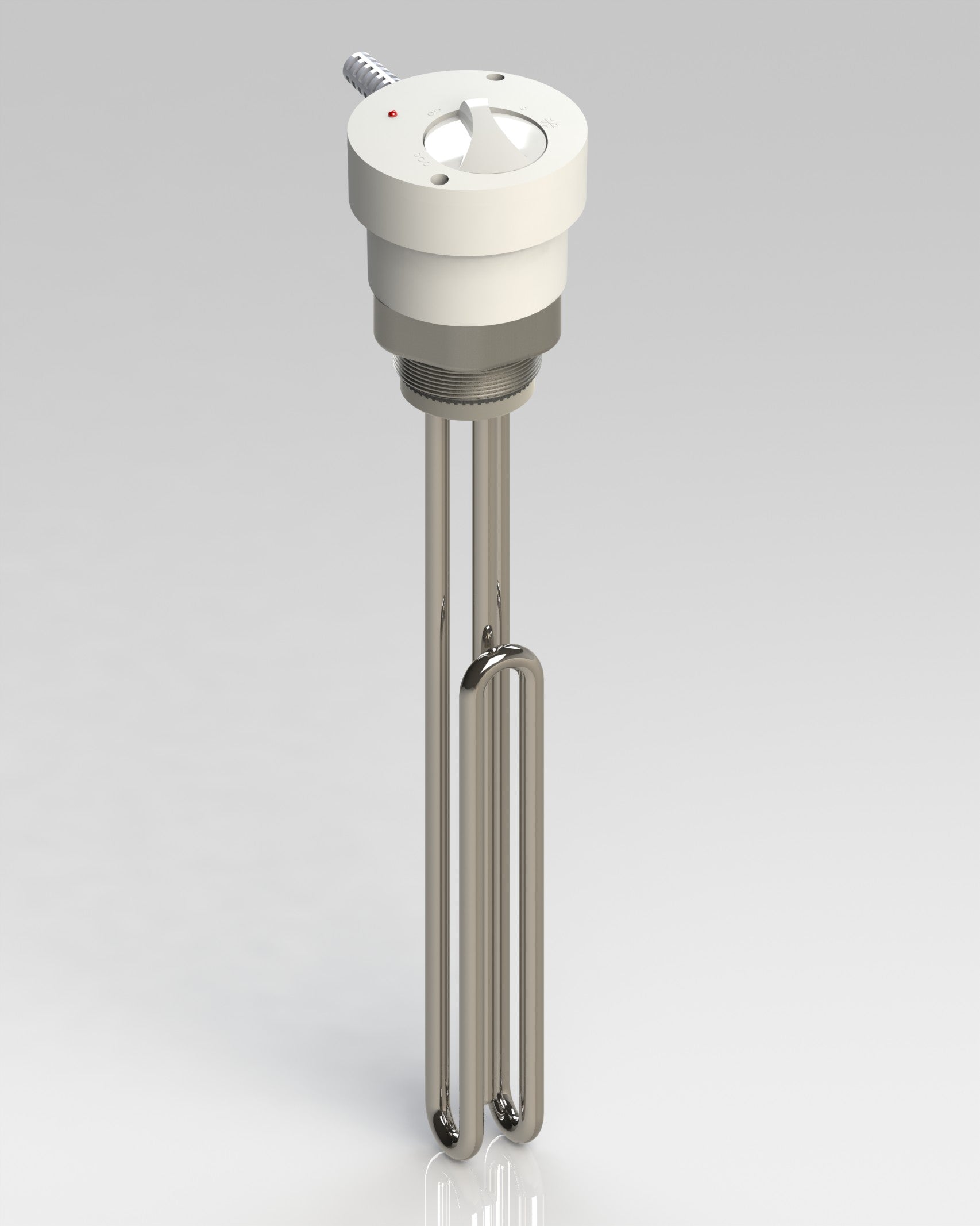 Elektrischer Heizstab für elektrische Boiler, Wassertanks und Pufferspeicher, kopfseitig mit einstellbarem Thermostat.