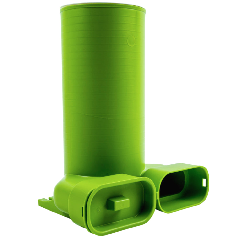 Dieses Anschlussteil ermöglicht den Einbau eines Ventils mit einem Anschlussdurchmesser von 125 mm in das CWL-Luftverteilersystem. Für einen Luftaustritt aus dem betreffenden Ventil bis ca. 30 m³/h ist ein einziger Luftrohrstutzen ausreichend, der andere Stutzen wird dann mit der mitgelieferten Rohrkappe abgeschlossen. Soll der Luftaustritt aus dem Ventil zwischen 30 und 60 m³/h betragen, muss ein zweiter flexibler Luftverteilerschlauch angeschlossen werden.