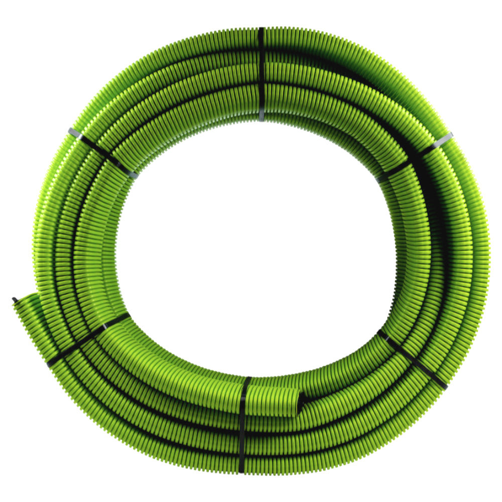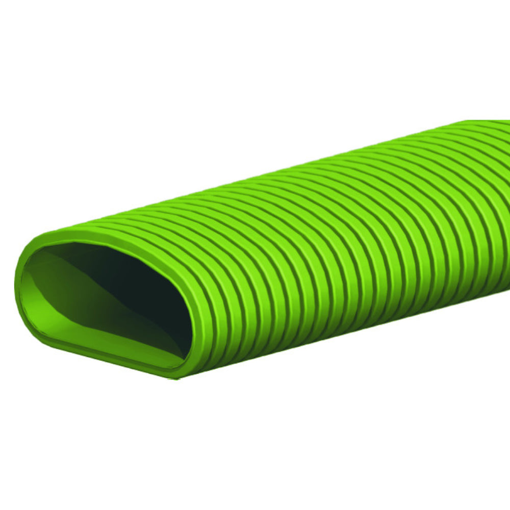 Der flexible Luftverteilerschlauch aus geruchsneutralem Polyethylen ist zweischichtig aufgebaut. Nach außen gewellt, weist die glatte Innenhaut eine antistatische und antibakterielle Beschichtung auf. Mit diesem Flachkanal wird die Lüftungsluft ab dem Luftverteiler zu den Gittern oder Ventilen gefördert. Der flache Schlauch mit einer Größe von 50 × 140 mm eignet sich für einen Luftvolumenstrom von maximal 50 m³/h. Der Kanal kann mit einer Säge problemlos verkürzt werden. Die Montage erfolgt immer mit der flachen Seite des Schlauchs an der Wand bzw. am Fußboden.
