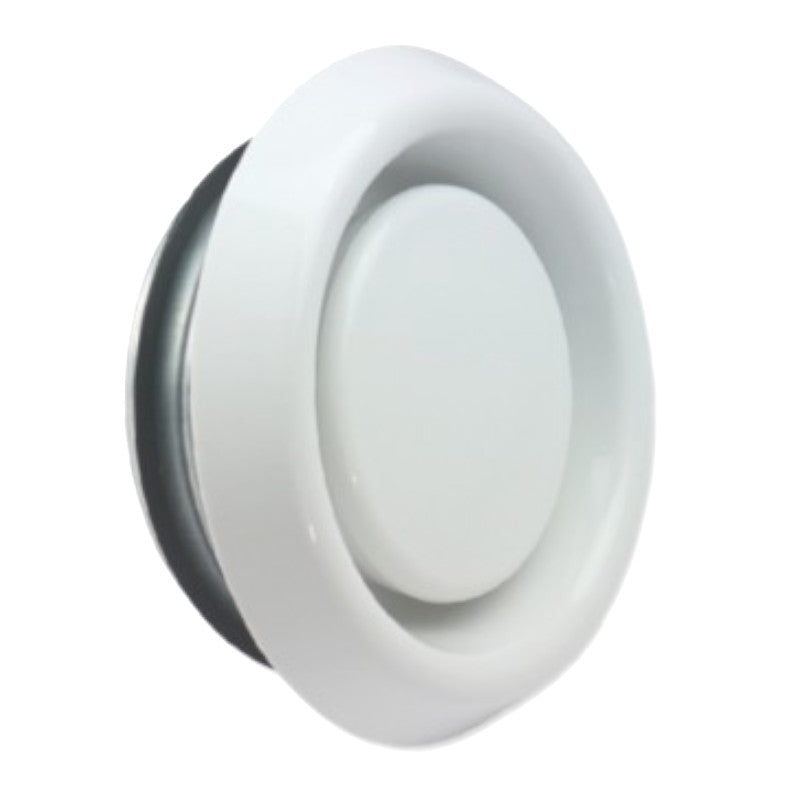 Das Kunststoff-Abluftventil (Farbe RAL 9016) eignet sich speziell für feuchte Räumlichkeiten. Für eine einfache Montage ist das Ventil mit 3 Edelstahl-Klemmfedern versehen. Der Kegel dieses Abluftventils ist stufenweise einstellbar. Zum Einstellen des Kegels wird zunächst der Sicherungsclip auf der Rückseite des Ventils gelöst, anschließend kann der Kegel weiter hinein- oder herausgeschoben werden. Nach der Einstellung wird der Sicherungsclip wieder montiert. Serienmäßig wird ein Einbaurahmen und eine Gummilippendichtung mit diesem Ventil mitgeliefert.