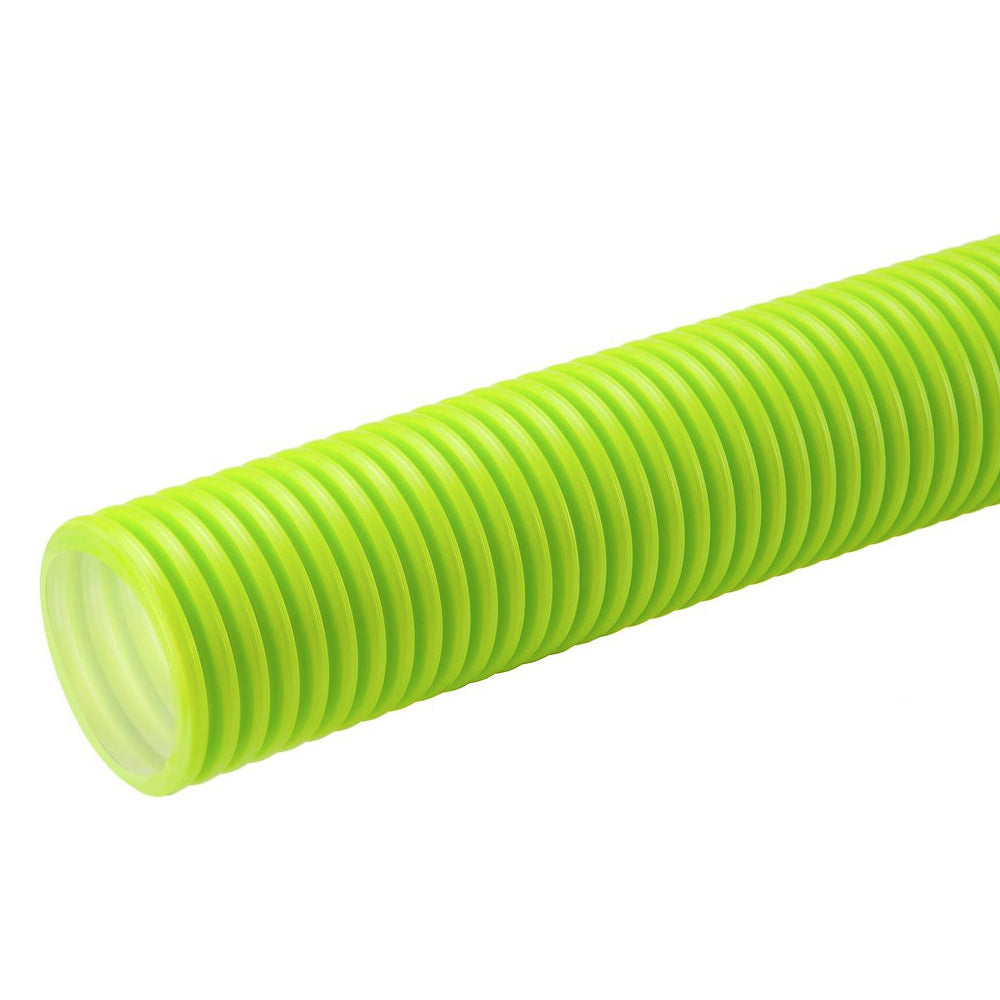 Der flexible Lüftungsschlauch aus geruchsneutralem Polyethylen ist zweischichtig aufgebaut. Nach außen gewellt, weist die glatte Innenhaut eine antistatische und antibakterielle Beschichtung auf. Der Schlauch ist endlos wasser- und luftdicht (nach DIN EN 1610) und kann mithilfe von Klickverbindern und Dichtringen einfach im Estrich oder in der Betondecke verlegt werden.