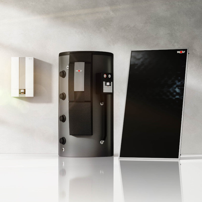 WOLF | Hybridheizung | Gasbrennwert-Heiztherme 14kW + 5 Solarkollektoren