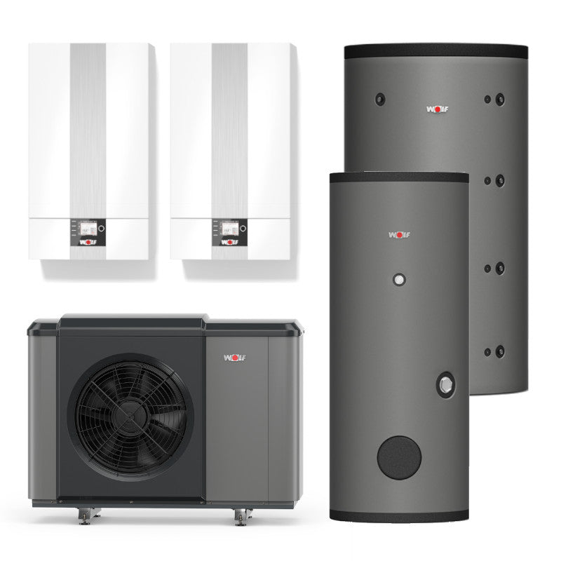 WOLF | Hybridheizung | Gasbrennwert-Heiztherme 14kW + Monoblock-Wärmepumpe 10kW