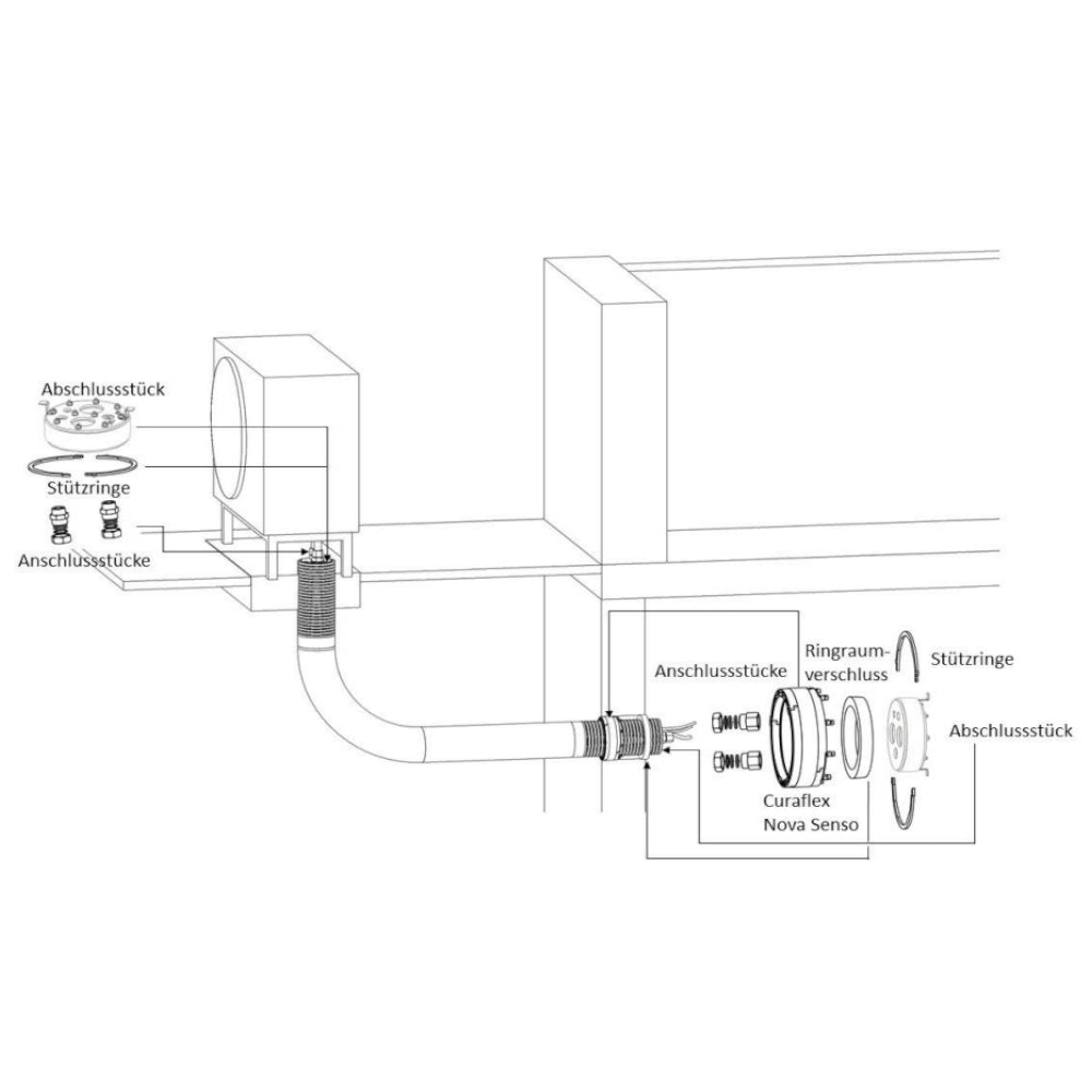 Dieses hydraulische Anschlussset eignet sich ideal zur einfachen Wanddurchführung bei Belastung durch drückendes Wasser. Die Abdichtung zwischen Mantelrohr und einer bauseits zu erstellenden Wanddurchdringung erfolgt mittels „Curaflex Nova Senso“ des Herstellers DOYMA (im Set enthalten). Dabei kann die Wanddurchdringung aus einer lunkerfreien Kernbohrung bei WU Beton (weiße Wanne) oder aus einem bauseitigen Futterrohr mit dem Durchmesser (DN) 249 – 253 mm bestehen.