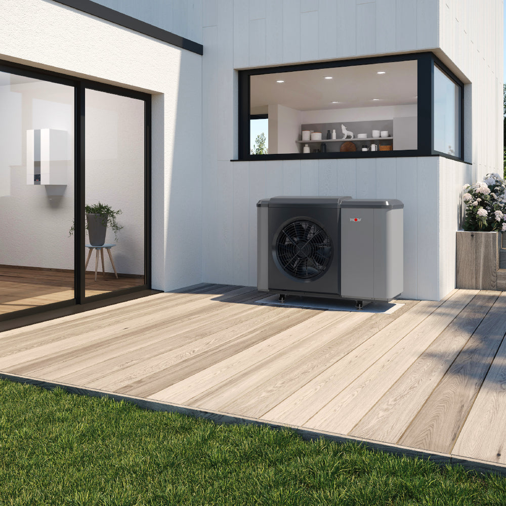 Die dezent und stilvoll gestaltete CHA-Monoblock spart wertvollen Platz. Im Gegensatz zu Split-Wärmepumpen sind bei Monoblock-Wärmepumpen wie der CHA keine baulichen Maßnahmen für Kältemittelleitungen erforderlich.