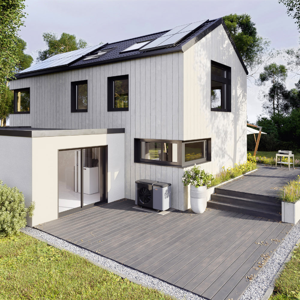 Die CHA-Monoblock lässt sich ideal mit weiteren effizienten Energiesystemen kombinieren. So können Sie den elektrischen Energieaufwand der Wärmepumpe beispielsweise über Ihre hauseigene Photovoltaikanlage decken und das gesamte Heizsystem noch umweltfreundlicher gestalten. Mit einem Stromspeicher können Sie zudem den selbst genutzten Anteil an Photovoltaik-Strom weiter erhöhen. So erreichen Sie maximale Autarkie im Eigenheim und können die Wärmepumpe rund um die Uhr besonders kostengünstig mit selbst produziertem Strom betreiben.